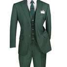 Suitania Collection: Hunter Green 3 Piece Pinstripe Single Breasted Regular Fit Suit
