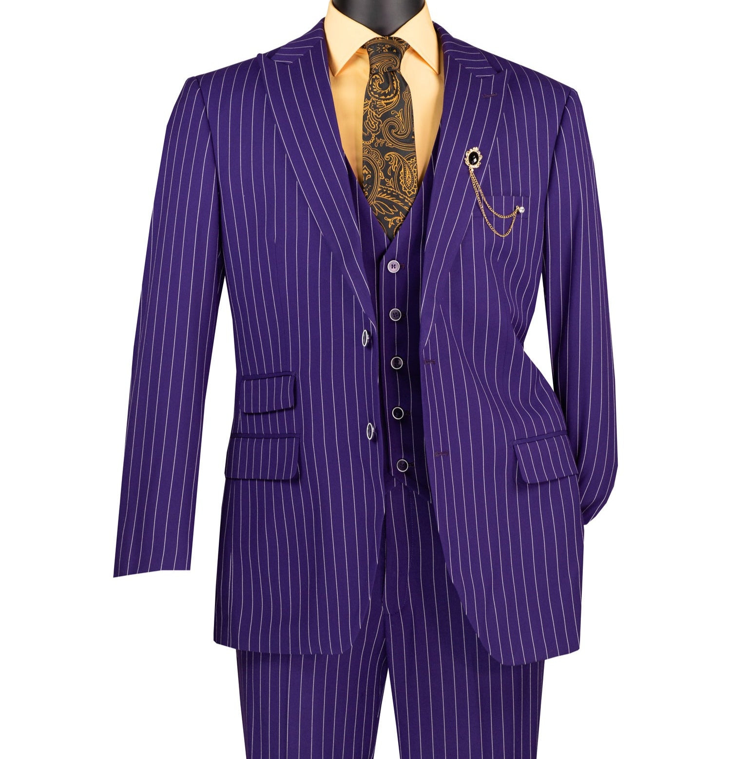 Suitania Collection: Purple 3 Piece Pinstripe Single Breasted Regular Fit Suit