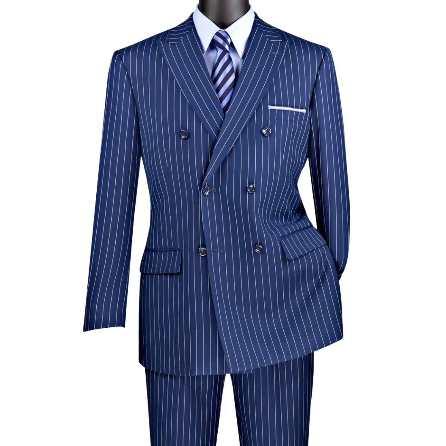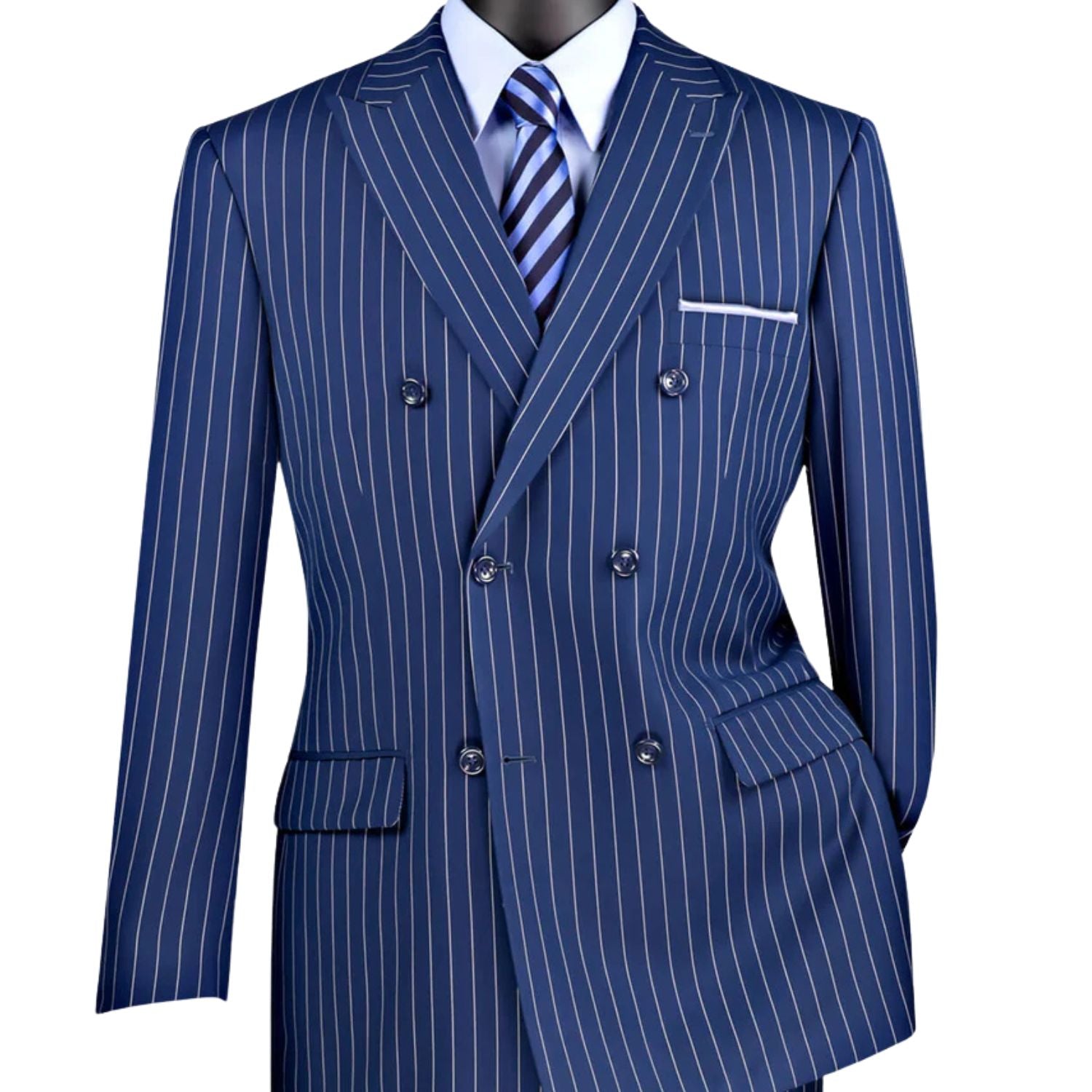 Symphony Collection: Blue 2 Piece Pinstripe Double Breasted Regular Fit Suit - FINAL SALE Size 40L/34 Waist