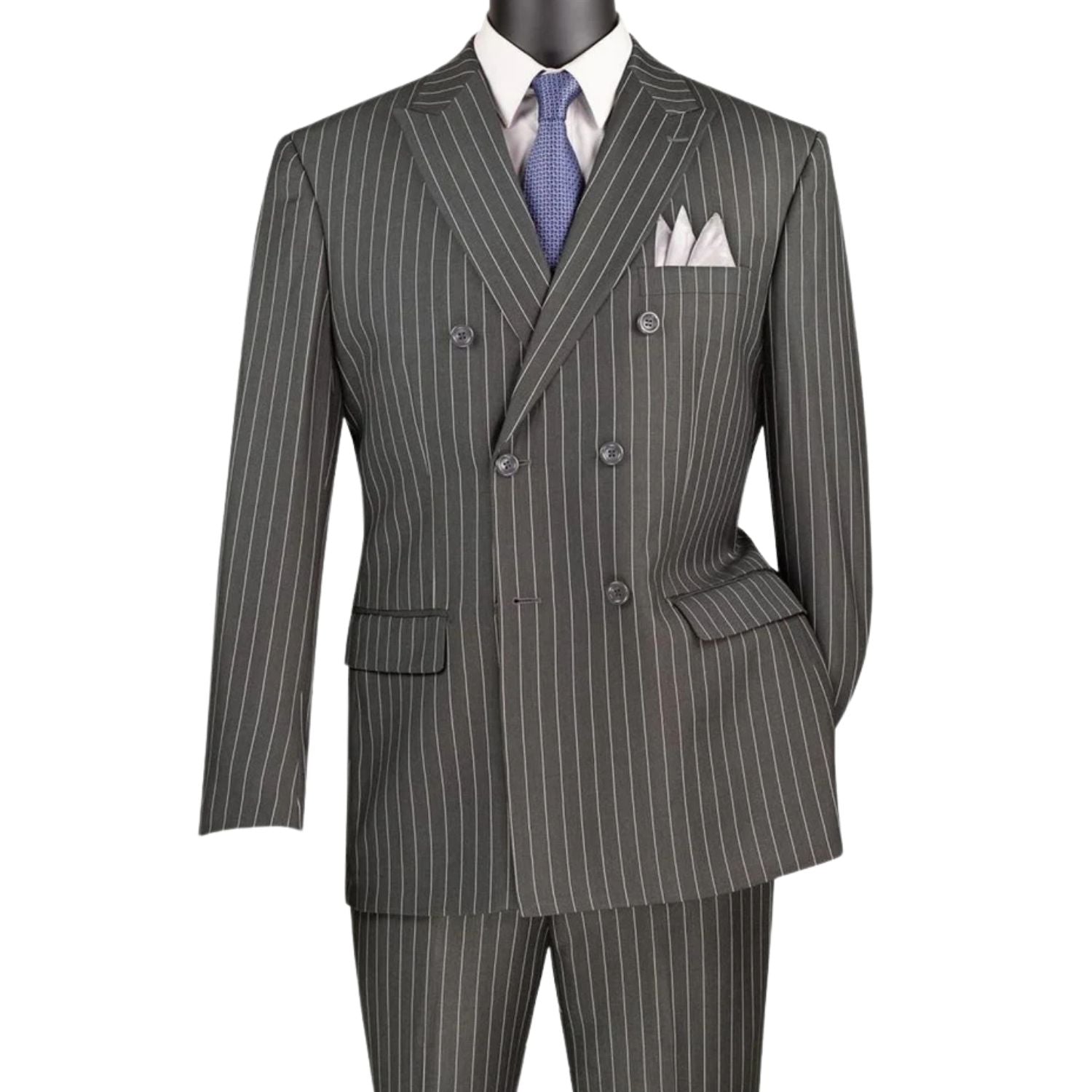 Symphony Collection: Charcoal 2 Piece Pinstripe Double Breasted Regular Fit Suit