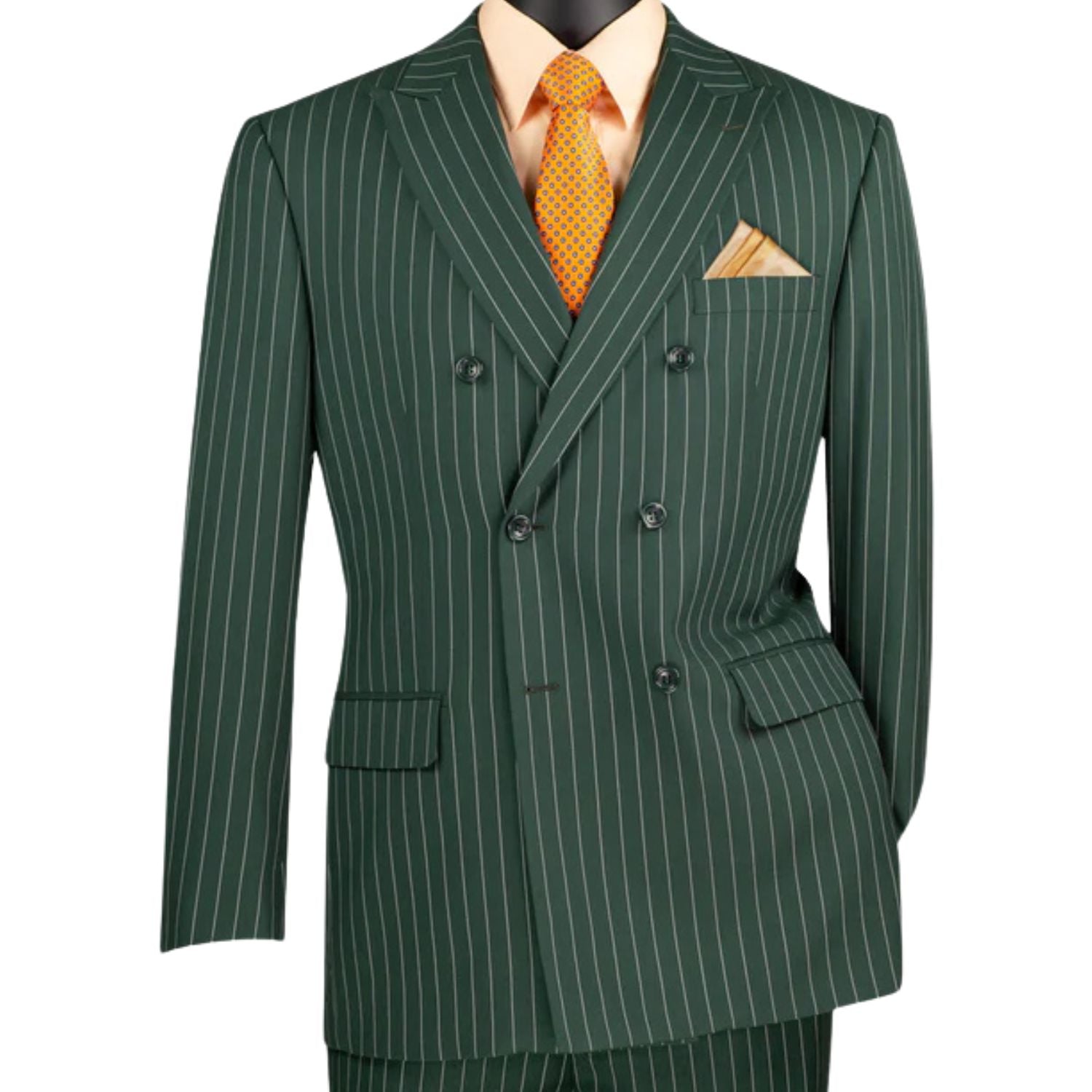 Symphony Collection: Hunter Green 2-Piece Gangster Stripe Double-Breasted Suit with Flexible Waistband - Regular Fit