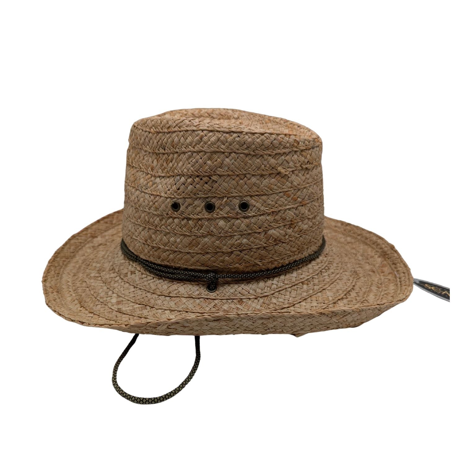 Tacoma Collection: Scala Natural Raffia Tiller Hat with Chin Cord and 3 3/4 Inch Brim