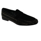 Tarsus Collection: Black & Gold Crystal Studded Velour Moc Toe Smoking Shoes