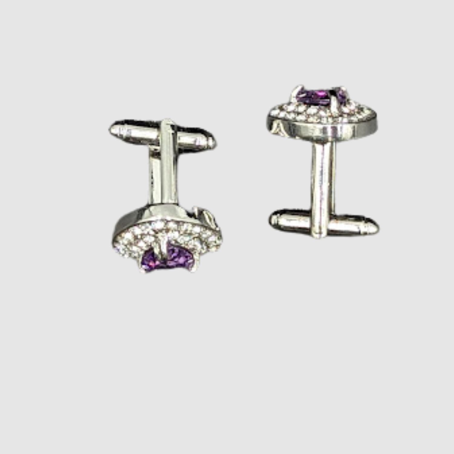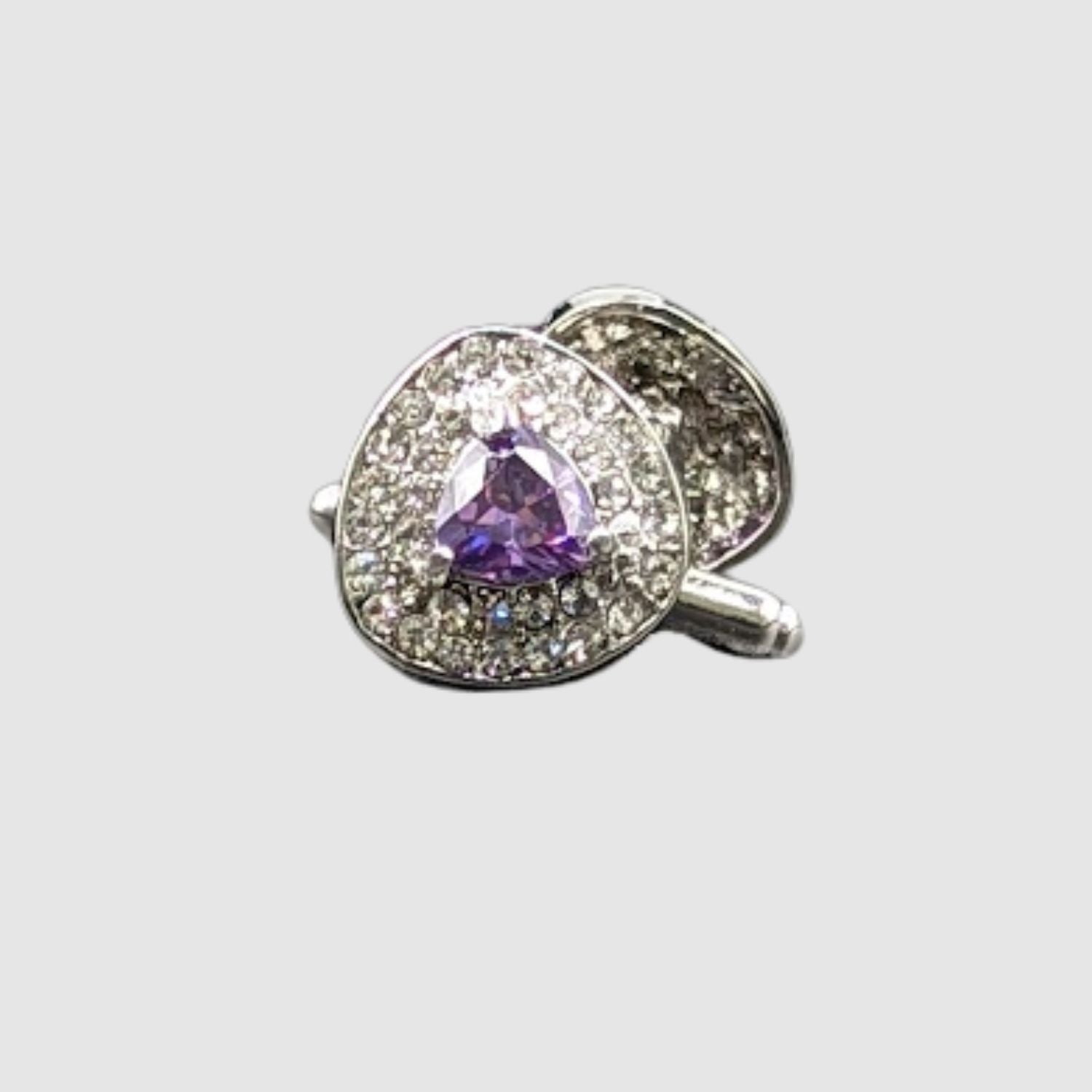 Elevate your formal wear with the exquisite charm of the Suits & More Teardrop Amethyst & Diamond Cufflinks. These cufflinks showcase a stunning teardrop-shaped amethyst, brilliantly encircled by a halo of sparkling diamonds, set in a polished silver frame. The unique design and vibrant color contrast make these cufflinks a luxurious addition to any gentleman's accessory collection.