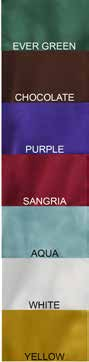 Color - Evergreen. White, Chocolate, Purple, Sangria, Aqua, Yellow