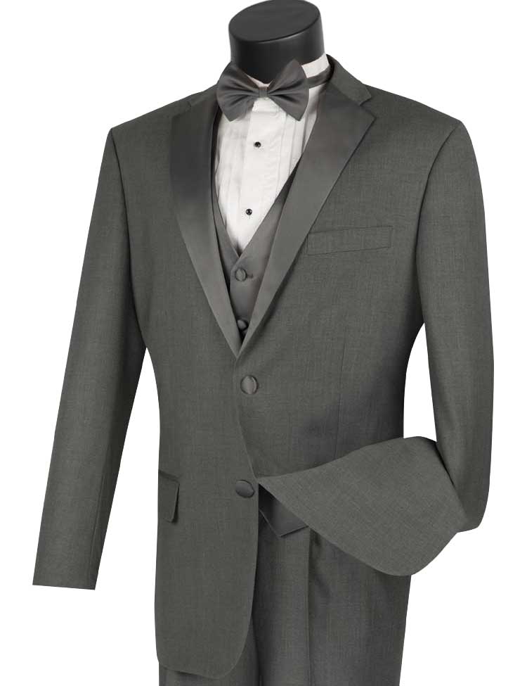 Tempel Collection: Gray 4-Piece Regular Fit Tuxedo with Vest and Bow Tie