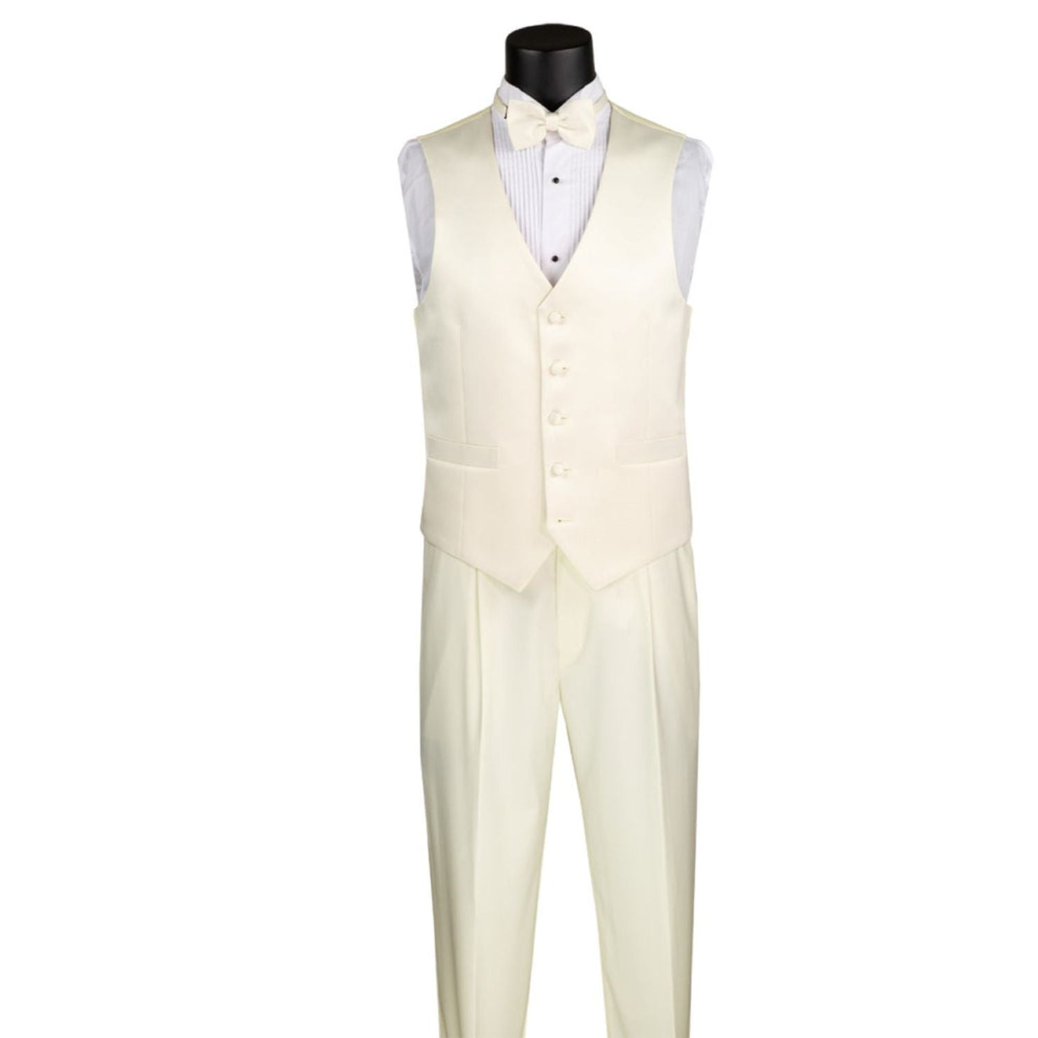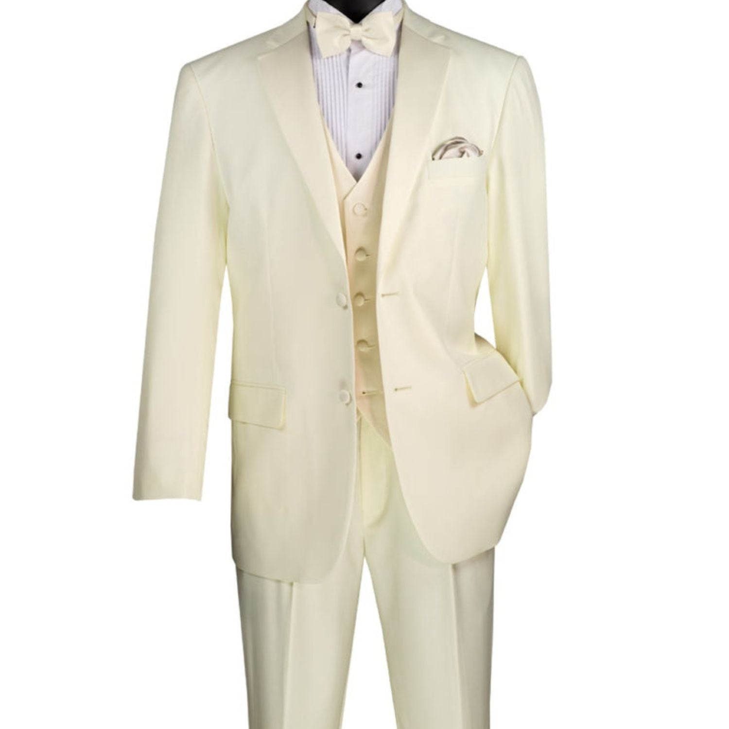 Tempel Collection: Ivory 4-Piece Regular Fit Tuxedo with Vest and Bow Tie with Adjustable Waistband