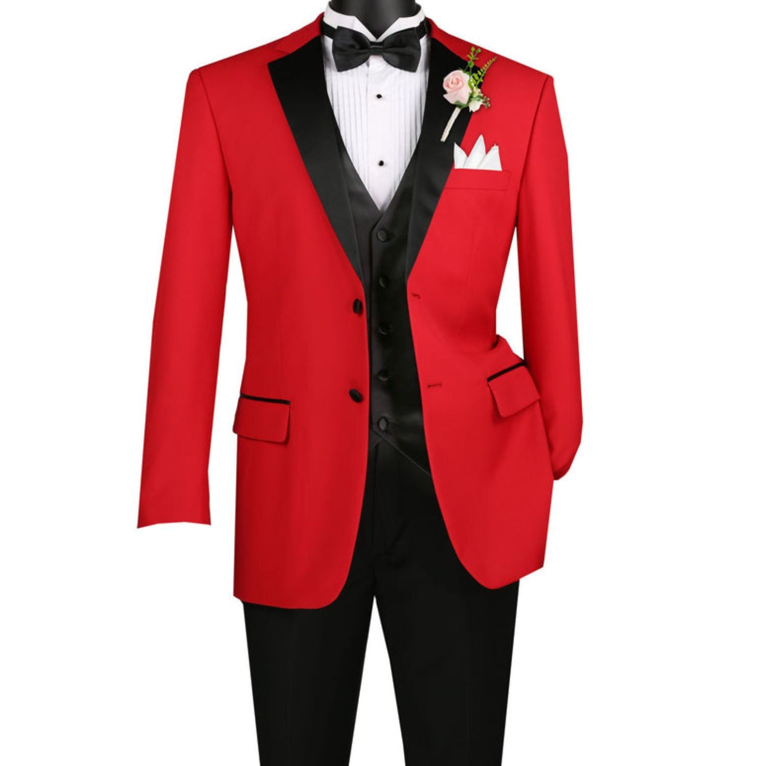 Tempel Collection: Red 4-Piece Regular Fit Tuxedo with Vest and Bow Tie with Adjustable Waistband