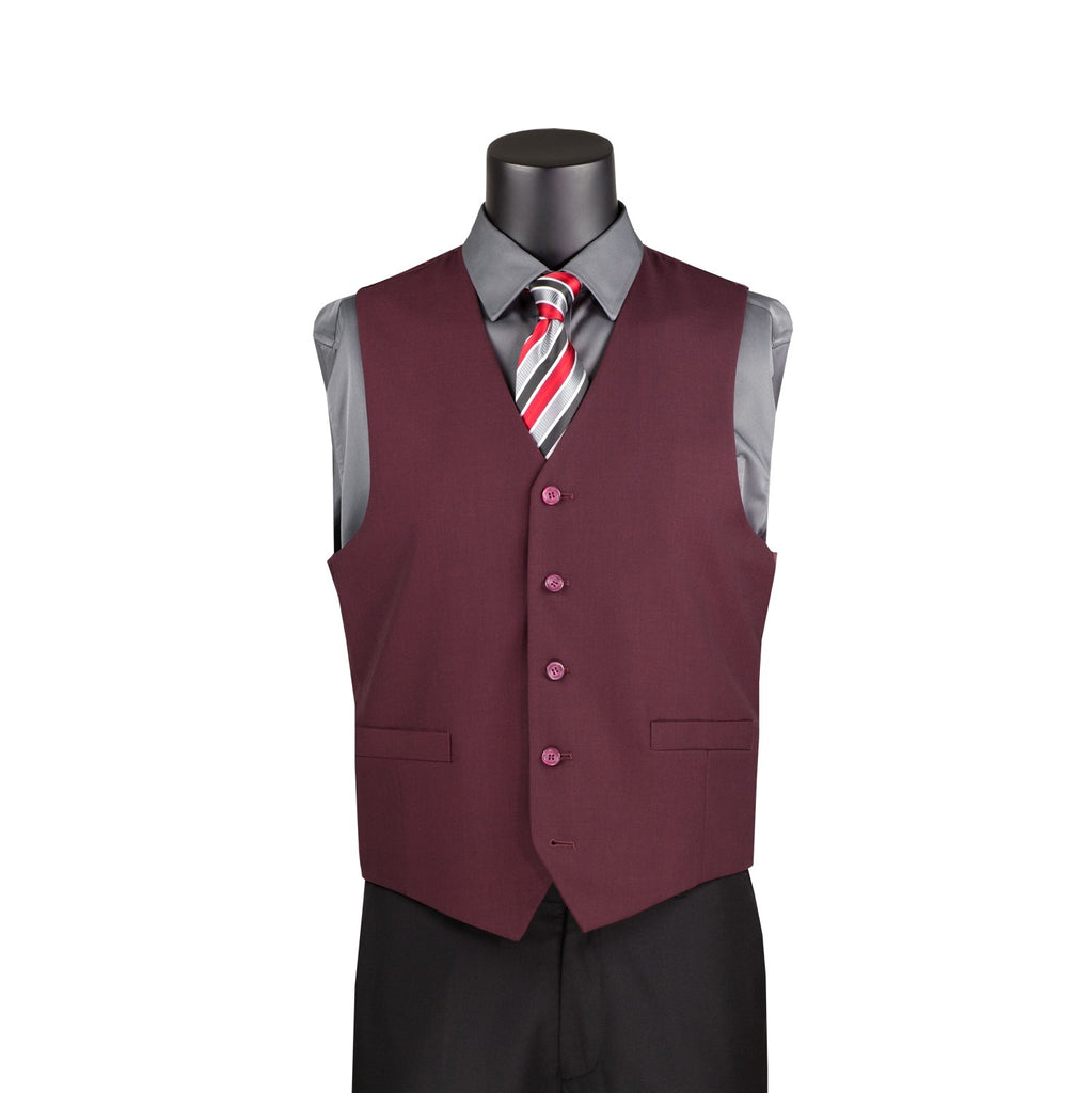 Terra Collection: Burgundy Solid Color Single Breasted Slim Fit Vest