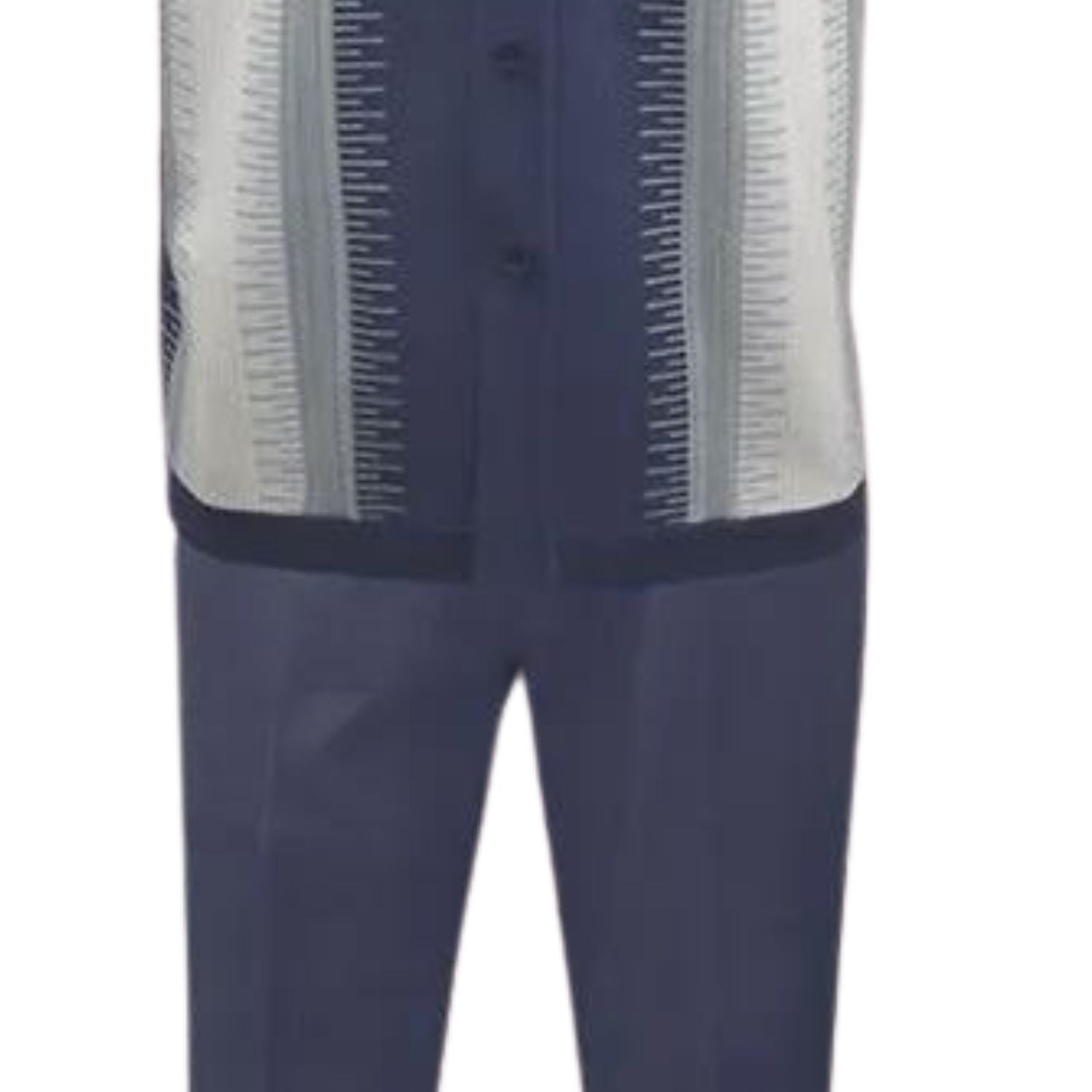 Textured Harmony Collection: Denim Two-Piece Vertical Stripes Short Sleeve Set - FINAL SALE Size 2XL/42 Waist