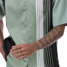 Montique 2 Piece Shorts Set 72322, a stylish ensemble comprising a short-sleeved shirt and matching short pants. The shirt features vertical stripes, an open collar, and a button closure, while the pants have an elastic waistband. With its tailored details, including a single pleat and 1" cuff, this set offers a sophisticated look. Made of polyester, it provides comfort and breathability. Dry cleaning is suggested for care.