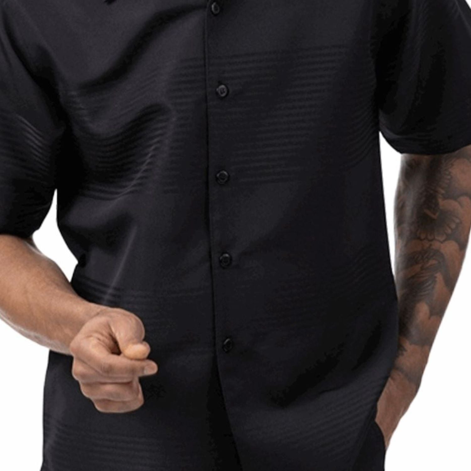 Tone On Tone Black Walking Suit 2 Piece Horizontal Stripe SHORTS SET 72222