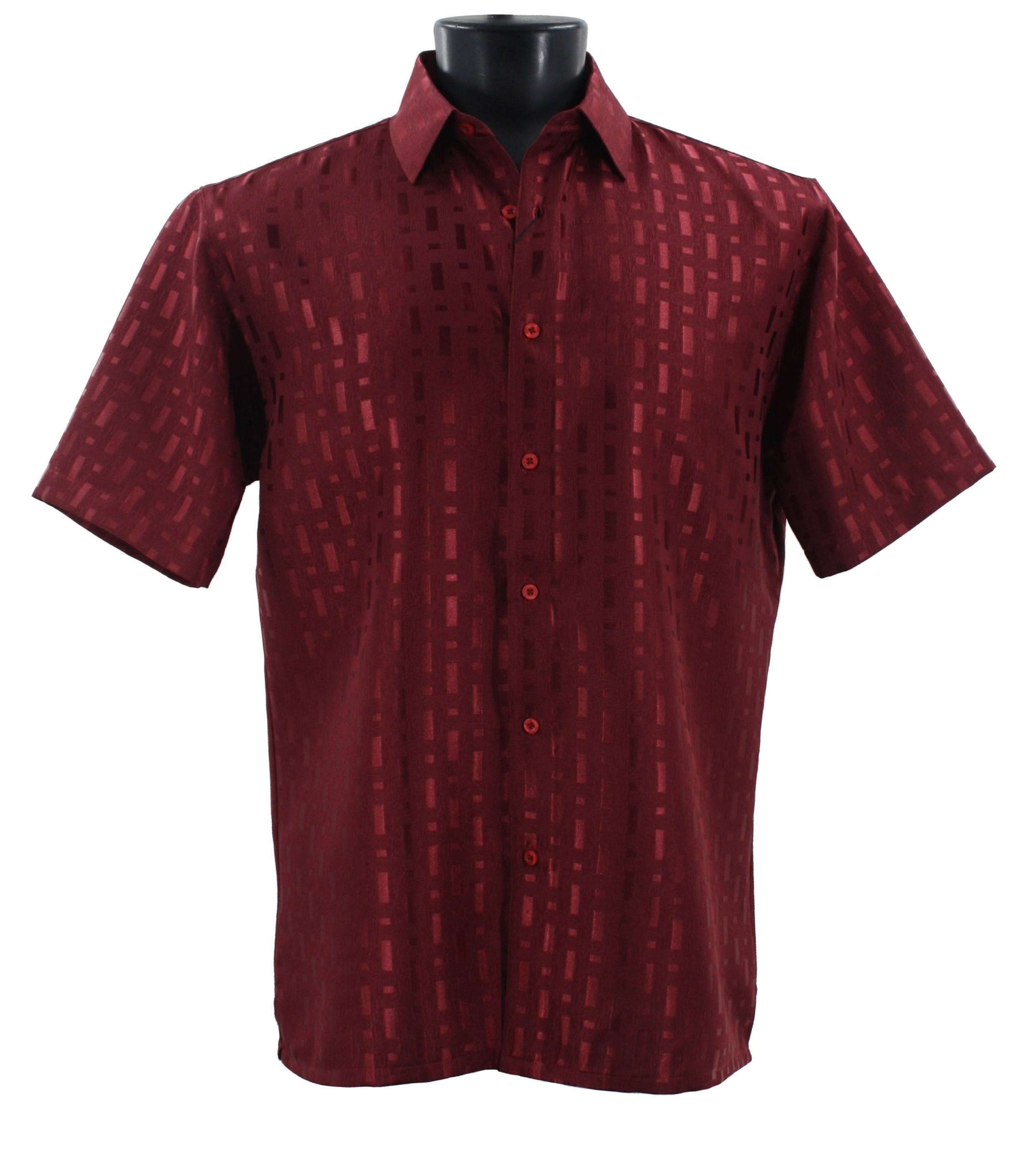 Tone Tribe Collection Tone on Tone Burgundy Geometric Short Sleeve Shirt – Full Cut