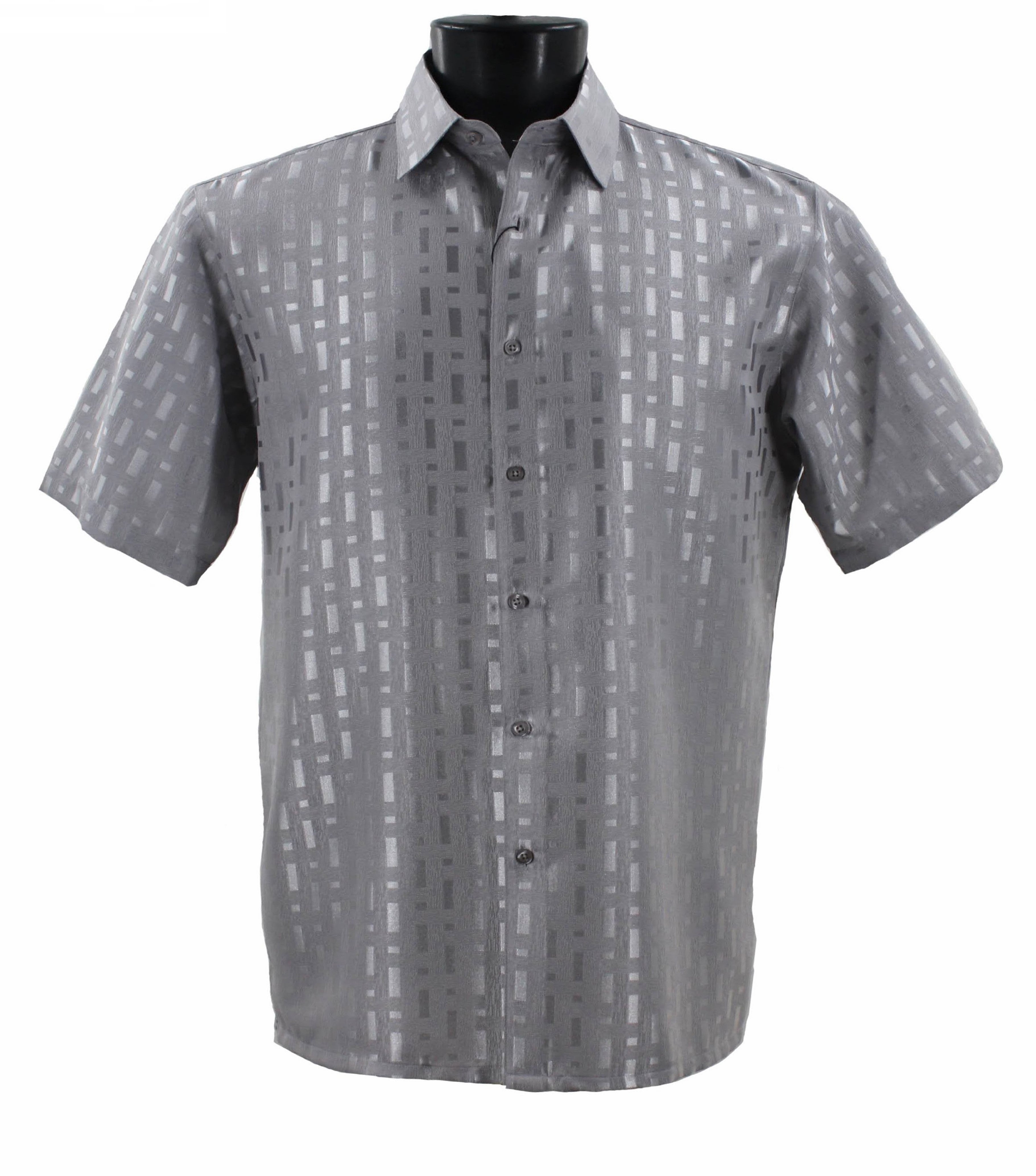 Tone Tribe Collection Tone on Tone Grey Geometric Short Sleeve Shirt – Full Cut