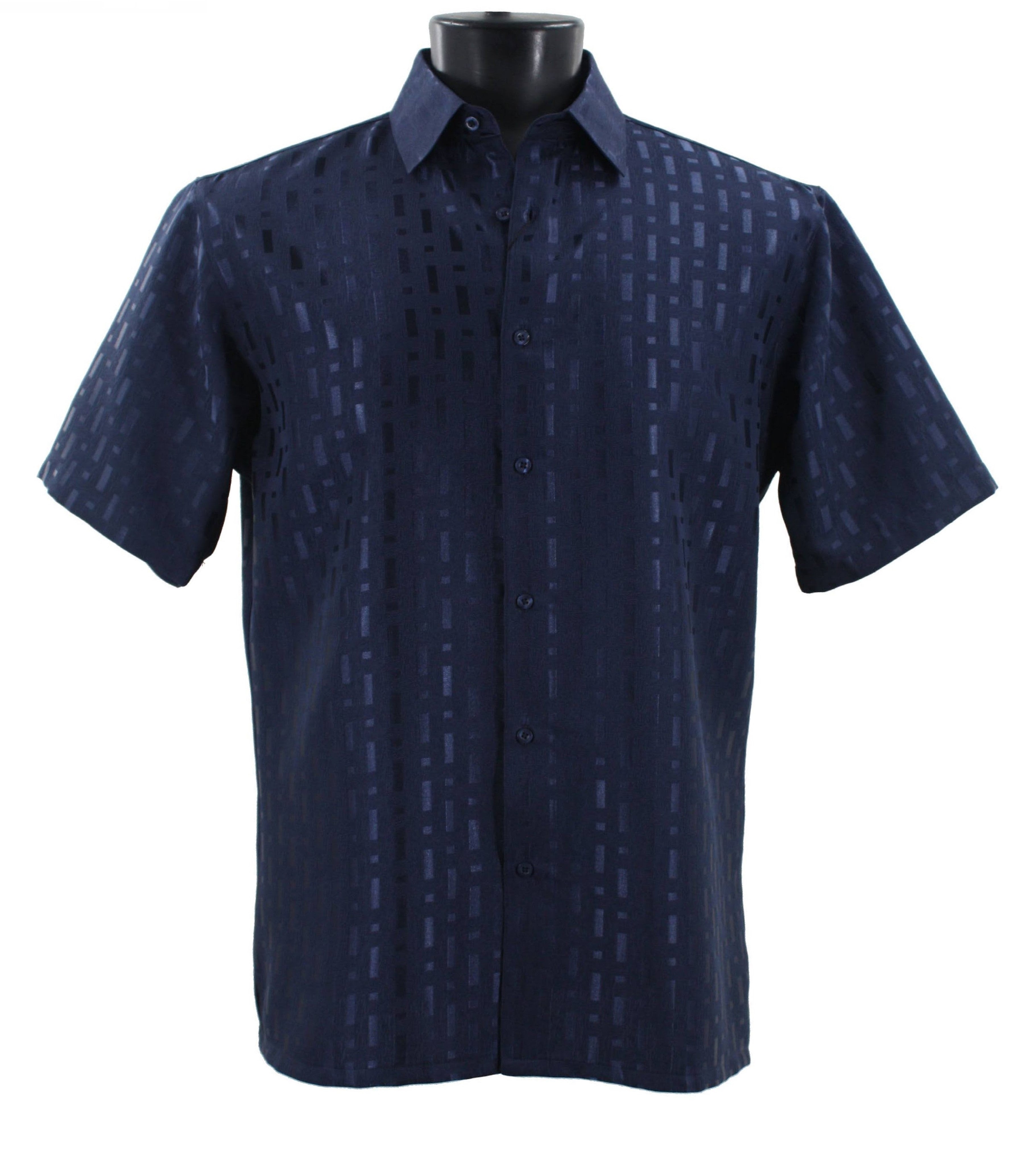 Tone Tribe Collection Tone on Tone Navy Geometric Short Sleeve Shirt – Full Cut