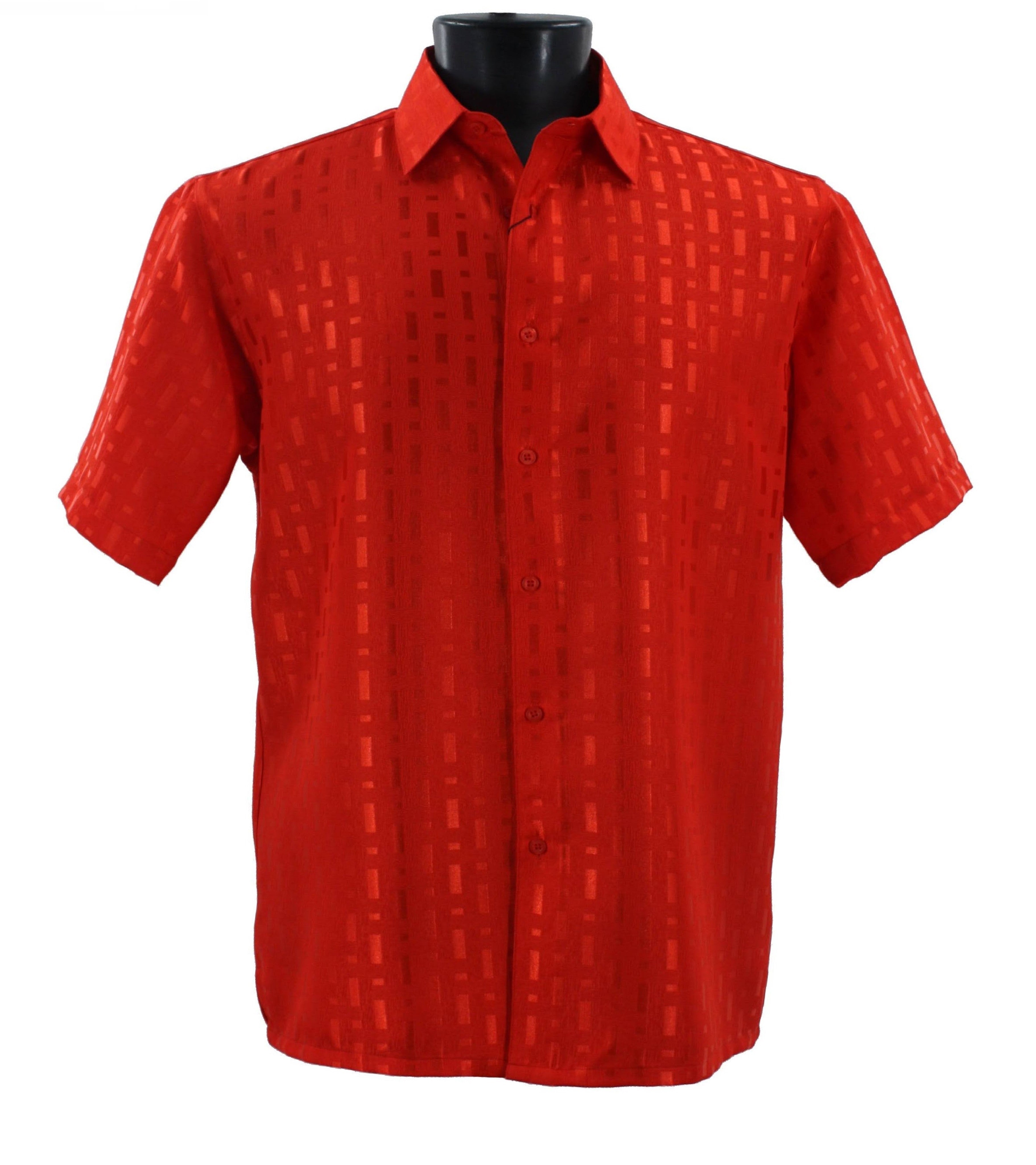 Tone Tribe Collection Tone on Tone Red Geometric Short Sleeve Shirt – Full Cut