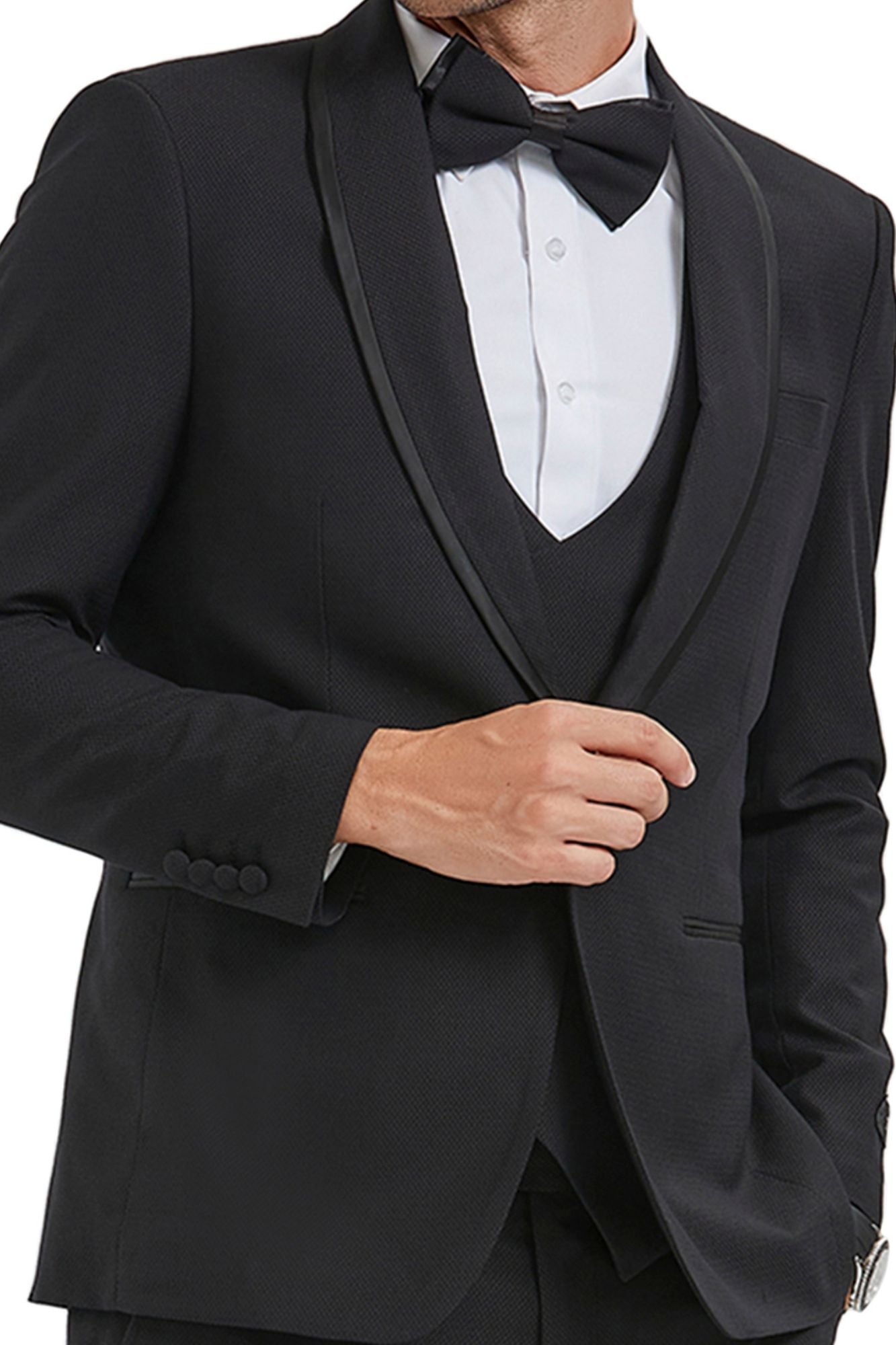 Tranquility Collection: Men's Birdseye 3-Piece Suit In Black - Slim Fit