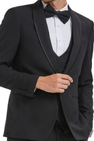 - Elegant Satin Accents: Adding a touch of shine to the shawl collar, pockets, and bowtie.