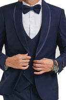 Tranquility Collection: Men's Birdseye 3-Piece Suit In Blue - Slim Fit