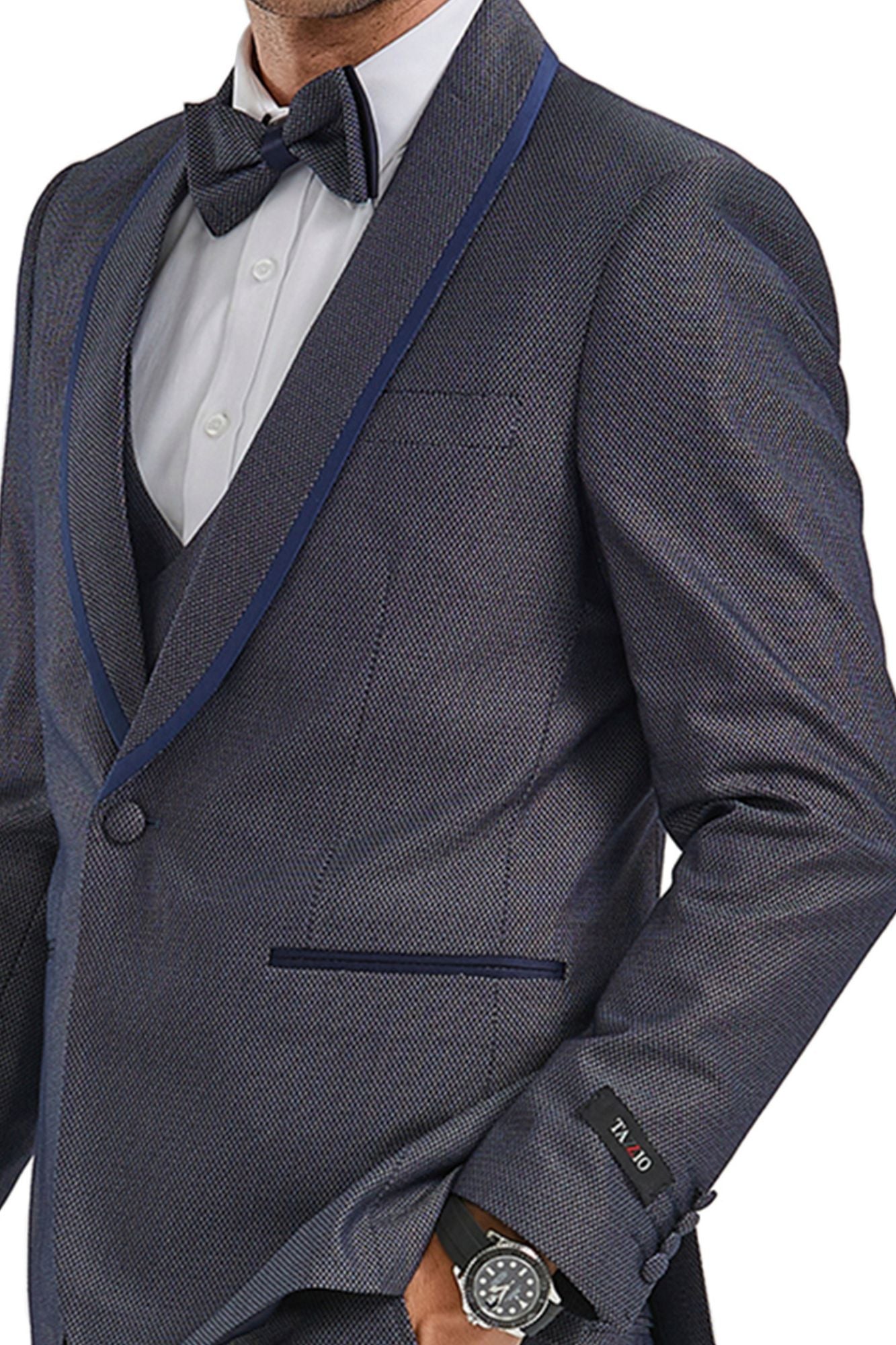 Tranquility Collection: Men's Birdseye 3-Piece Suit In Grey/Navy - Slim Fit