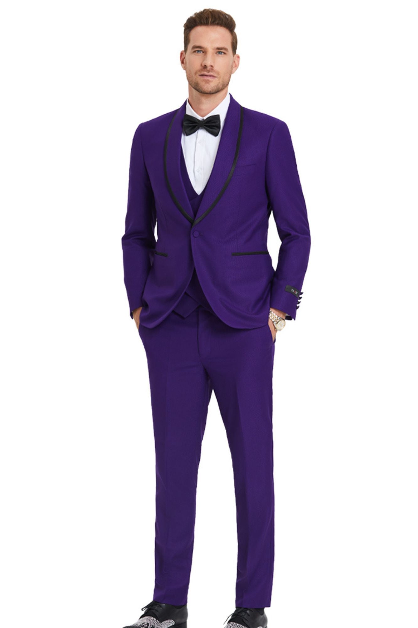 Tranquility Collection: Men's Birdseye 3-Piece Suit In Purple - Slim Fit