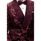 Trendish Collection: Burgundy 2-Piece Double Breasted Velvet Shawl Lapel Tuxedo
