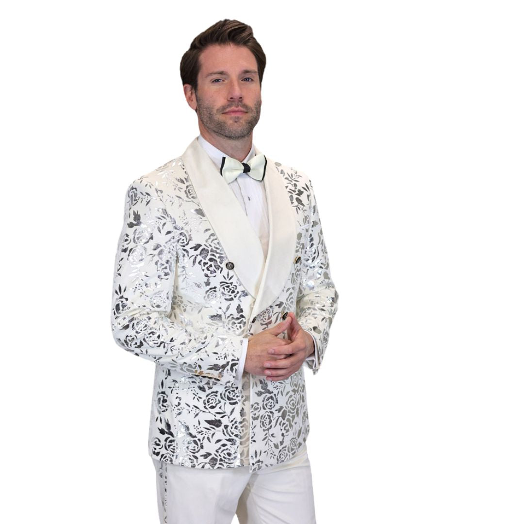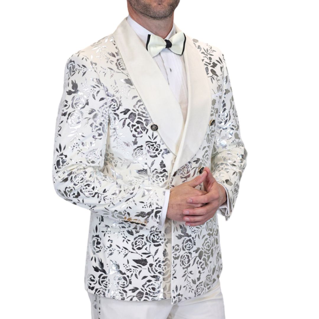 Trendish Collection: Ivory 2-Piece Double Breasted Velvet Shawl Lapel Tuxedo