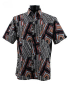 Tribo Collection: Black & Brown Ethnic-Inspired Geometric Men's Short Sleeve Shirt