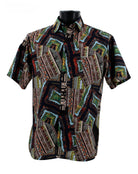 Tribo Collection: Black & Green Ethnic-Inspired Geometric Men's Short Sleeve Shirt