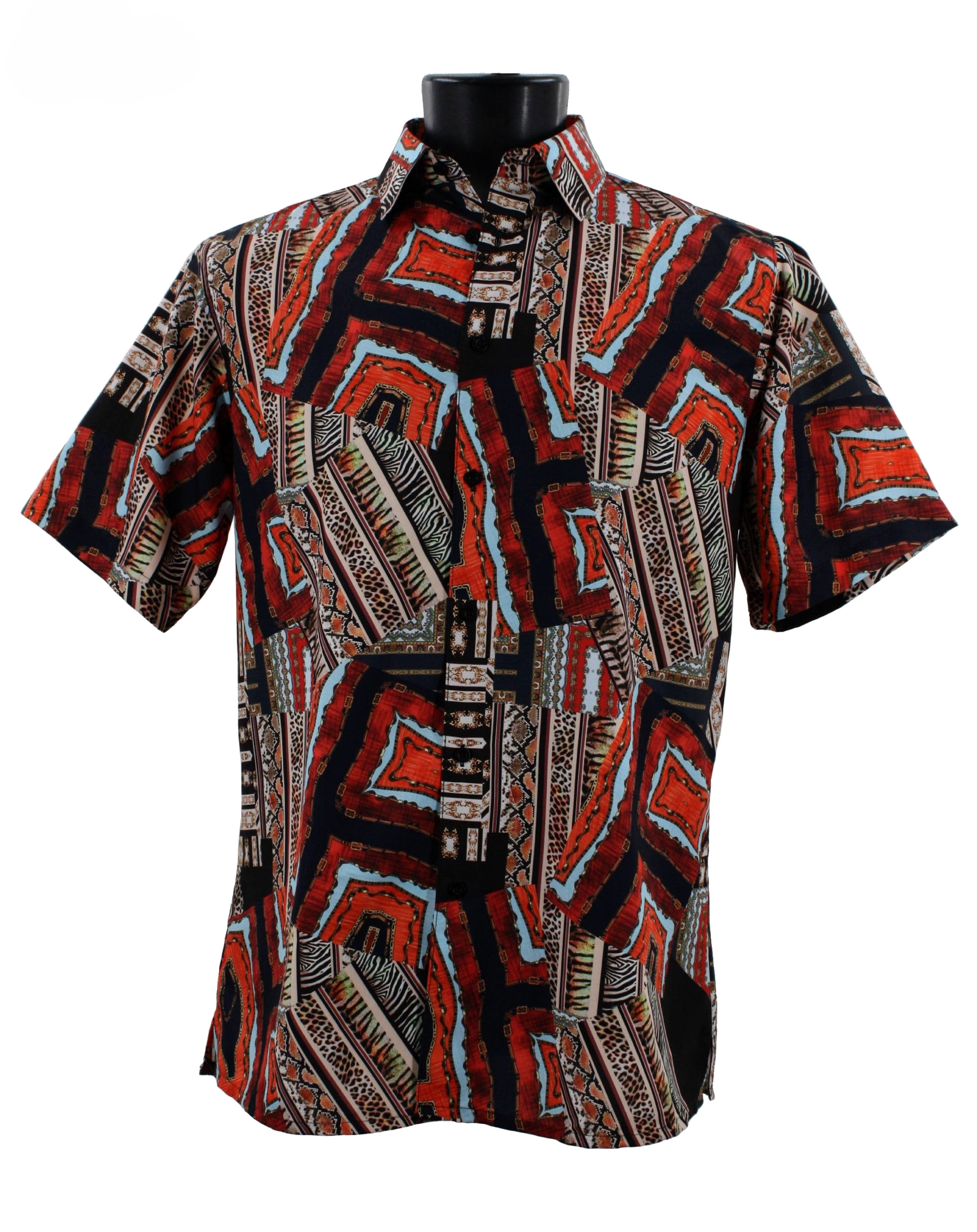 Tribo Collection: Black & Red Ethnic-Inspired Geometric Men's Short Sleeve Shirt