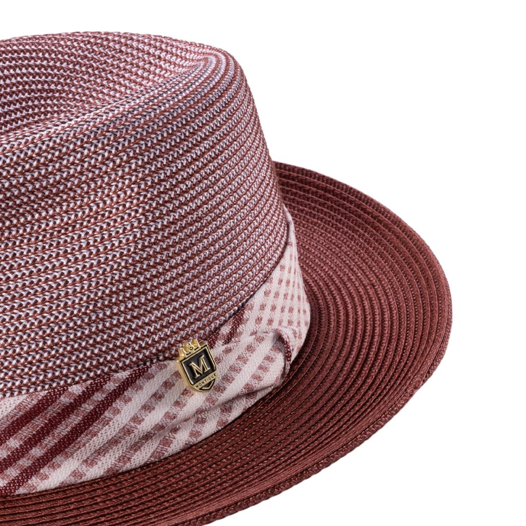 Tucana Collection: Montique Burgundy Fedora Hat with Checkered Ribbon Band