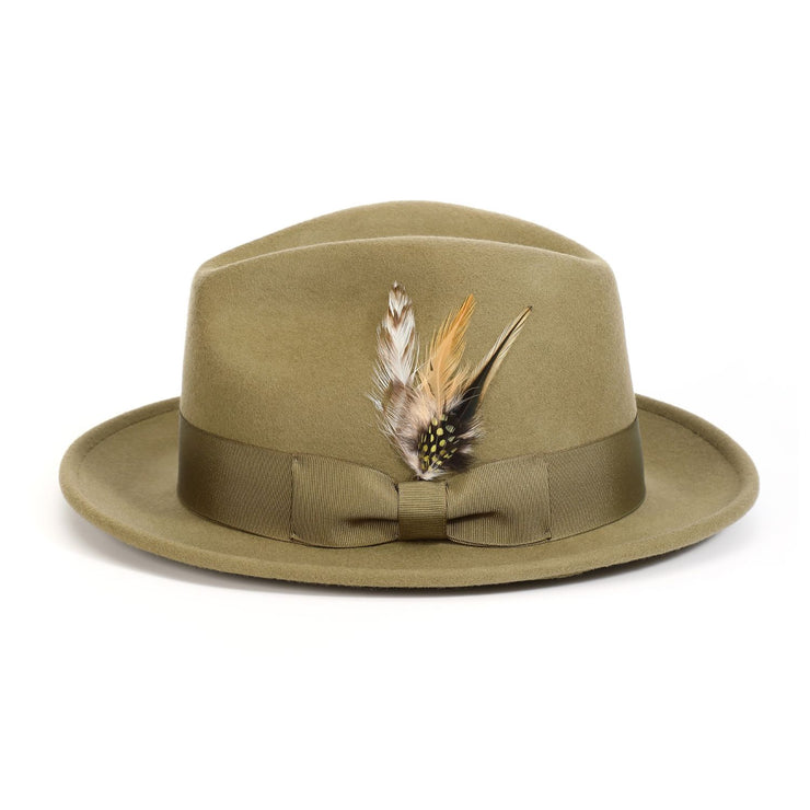 Twilique Collection: Montique Olive Lightfelt 2 ½" Wide Brim Wool Felt Pinch Hat