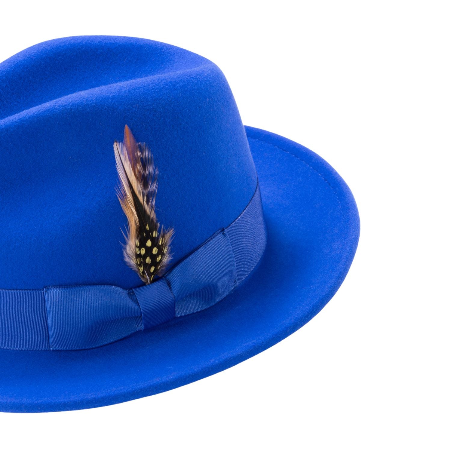 Upgrade your hat game with our Montique Royal Lightfelt 2 ½" Wide Brim Wool Felt Pinch Hat featuring a stylish feather accent. Crafted from 100% wool, this hat boasts a sophisticated pinch crown design and a classic 2 1/2" brim. Complete with a grosgrain ribbon for added charm, this hat exudes elegance and style. With no lining, it's lightweight and comfortable for all-day wear.