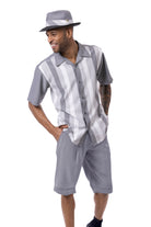 Urban Stripe Collection: Men Shorts Set Walking Suit in Grey