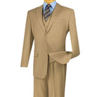 Urbano Collection: Khaki 3 Piece Solid Color Single Breasted Regular Fit Suit