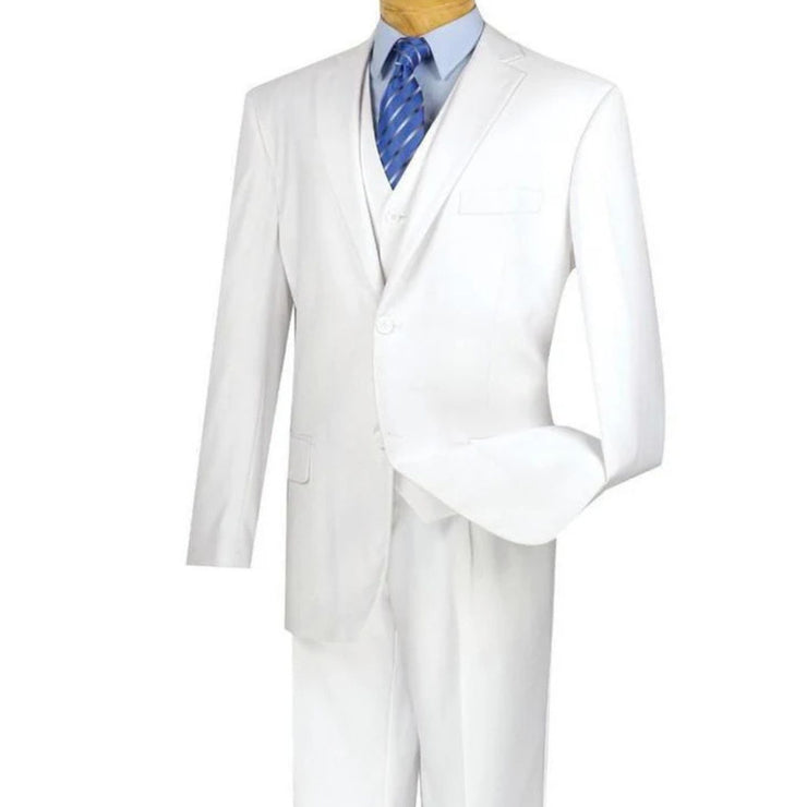 Urbano Collection: White 3 Piece Solid Color Single Breasted Regular Fit Suit