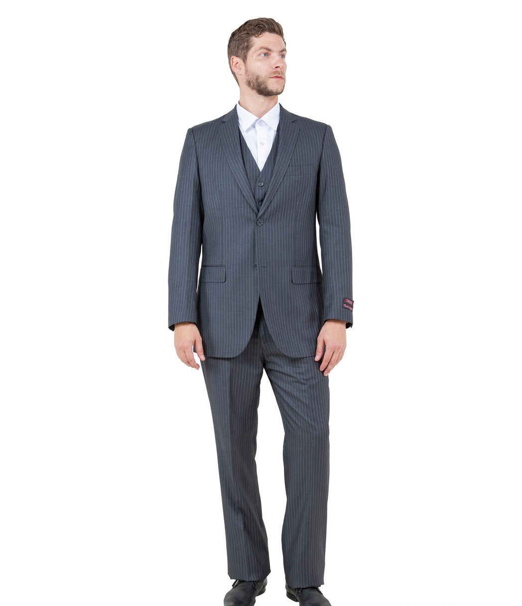 Valiant Vintage Grey Pinstripe Three-Piece Suit – Classic Fit