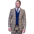 Vallario Collection: Camel 3-Piece Modern Fit Plaid Suit