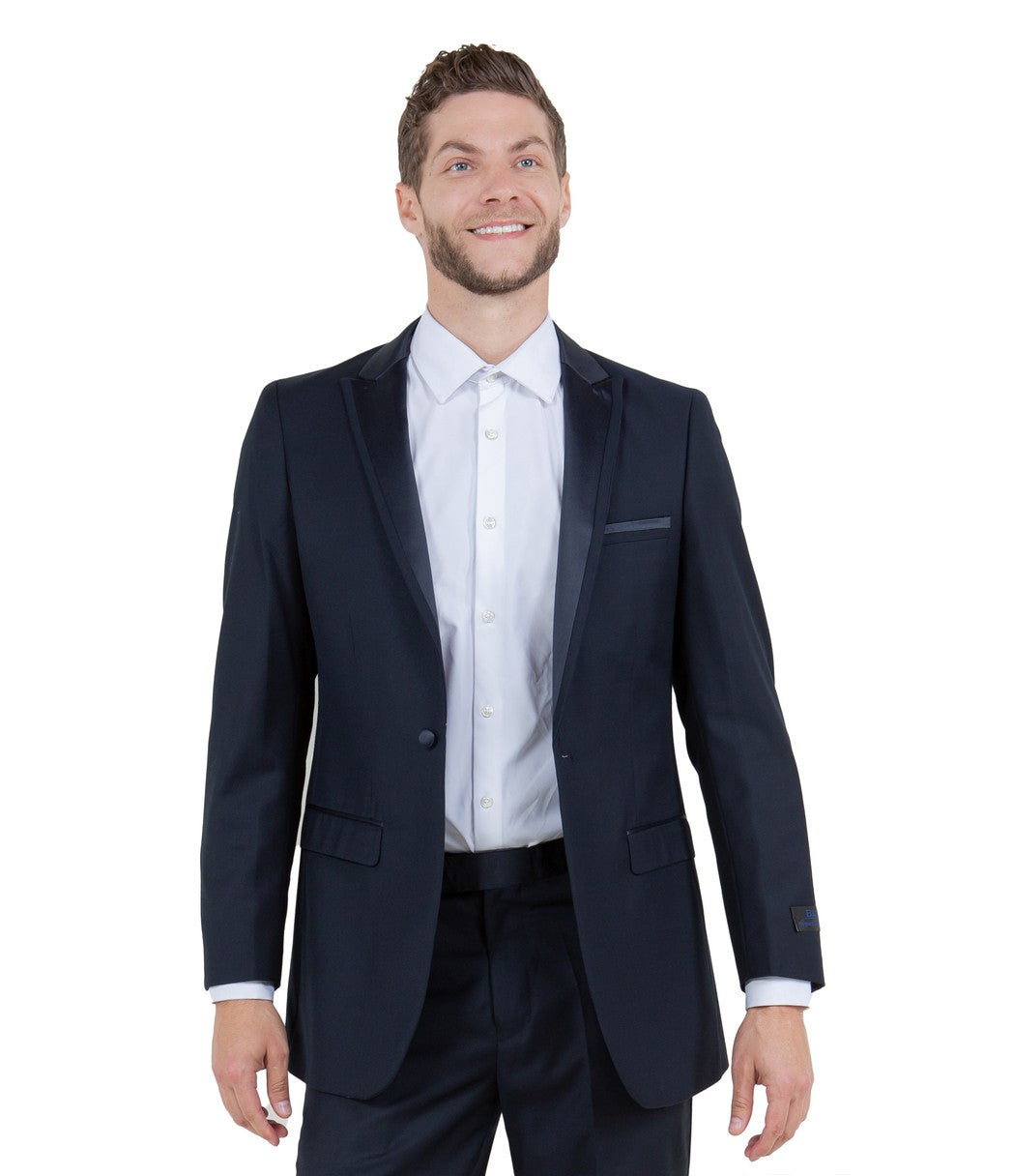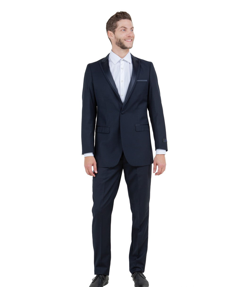 Vanguard Collection: Navy Tuxedo with Navy Satin Peak Lapel – Slim Fit
