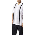 Vardos Collection: Men's Black & White 2-Piece Short Sleeve Set with Vertical Textured Stripes