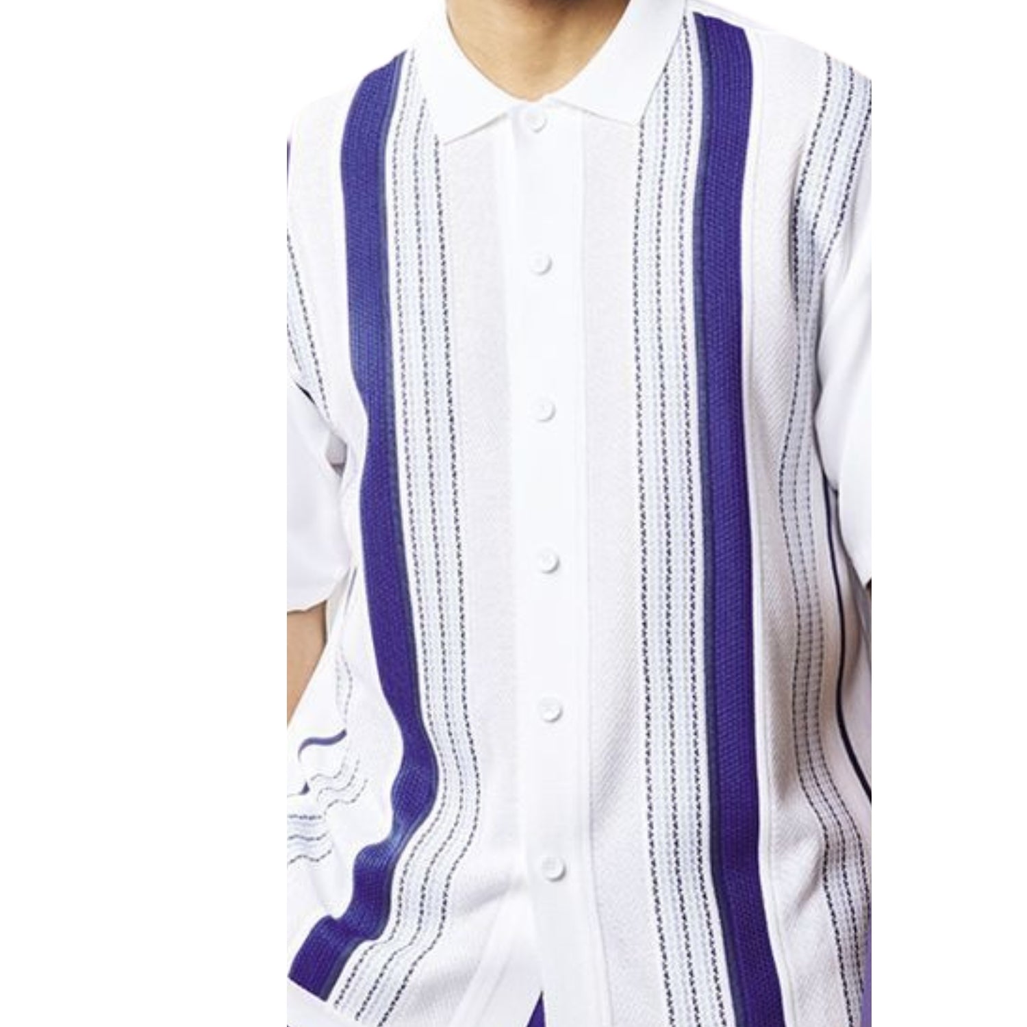 Vardos Collection: Men's Royal Blue & White 2-Piece Short Sleeve Set with Vertical Textured Stripes