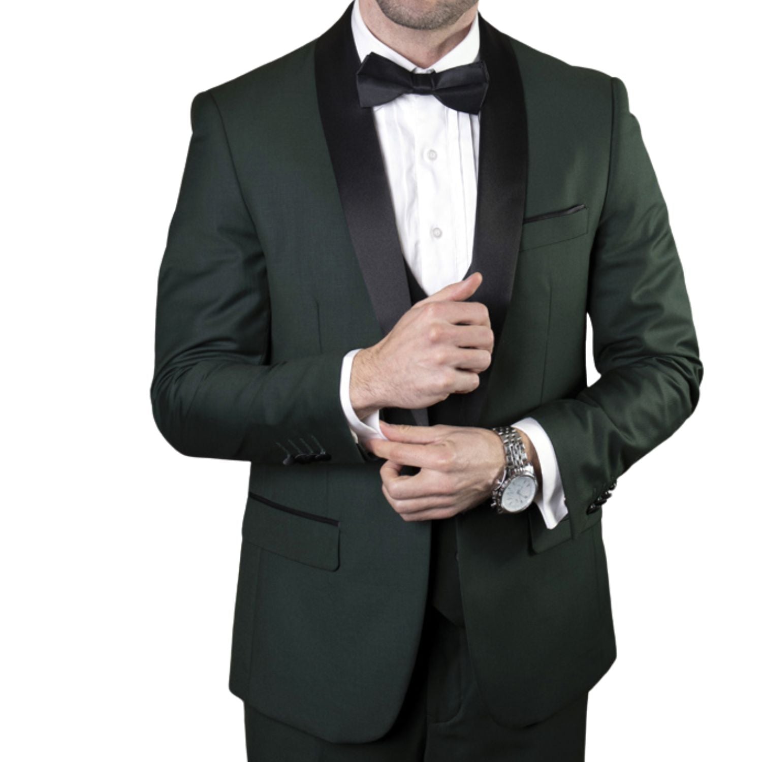 Discover the epitome of elegance with the Varuna Collection Tailored Fit Shawl Lapel Tuxedo. This luxurious three-piece ensemble is meticulously crafted from premium fabric for a refined look and unparalleled comfort. The tailored fit and flat front pants provide a sophisticated and modern silhouette, making it perfect for formal events and hunter-tie occasions.