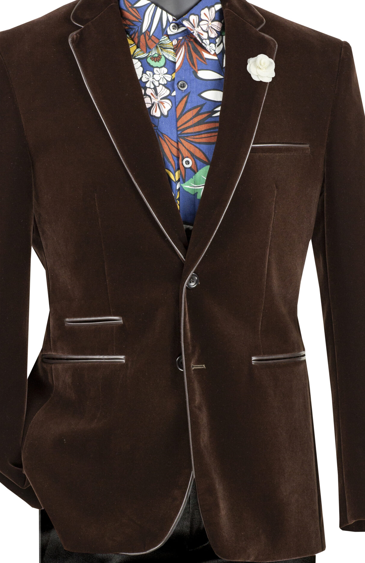 Velourfy Collection: Brown Velvet with Faux Leather Trim Single Breasted Slim Fit Blazer