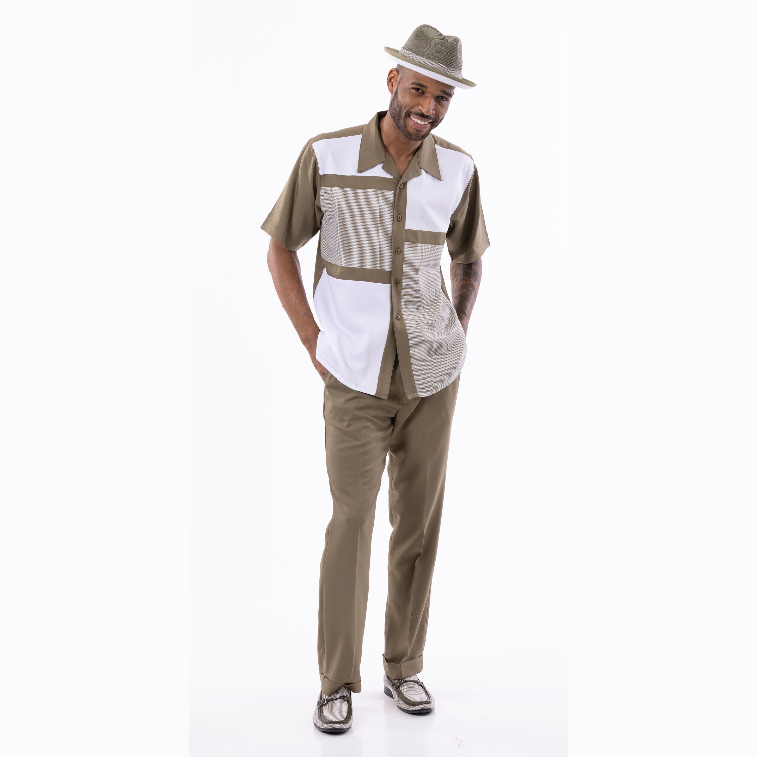 Montique Olive Houndstooth Color Block 2 Piece Walking Suit 2317