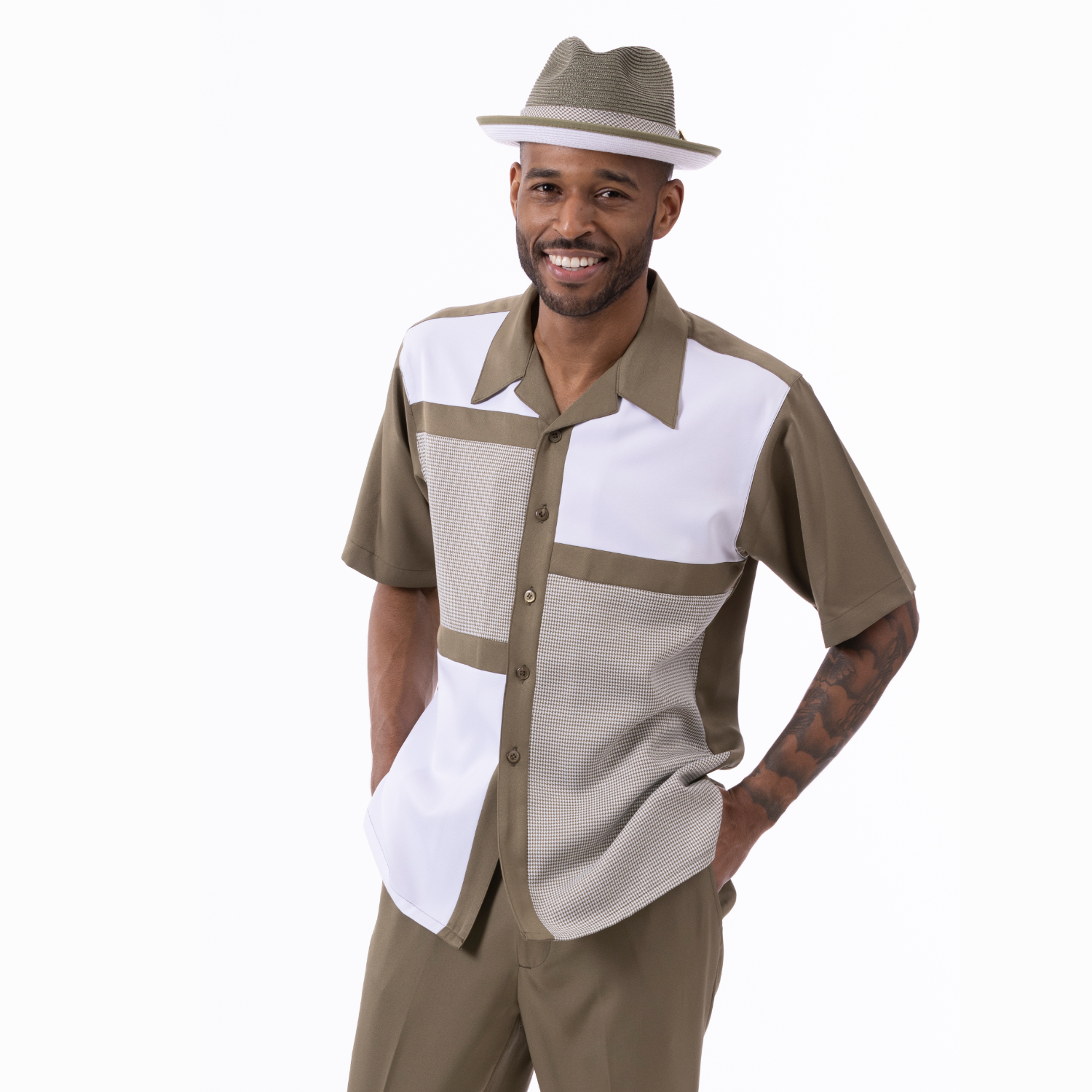 Unleash your signature style in our Montique Olive Houndstooth Color Block Walking Suit 2 Piece SHORTS SET 72317. Crafted with highly durable polyester and designed with a sophisticated color block, this suit adds a touch of modern elegance to any look. Featuring a comfortable elastic waistband, open collar and single pleat, as well as a button closure and 1” cuff, you'll move with ease and confidence all day long. Ready to turn heads? Dress the part in our Montique walking suit.