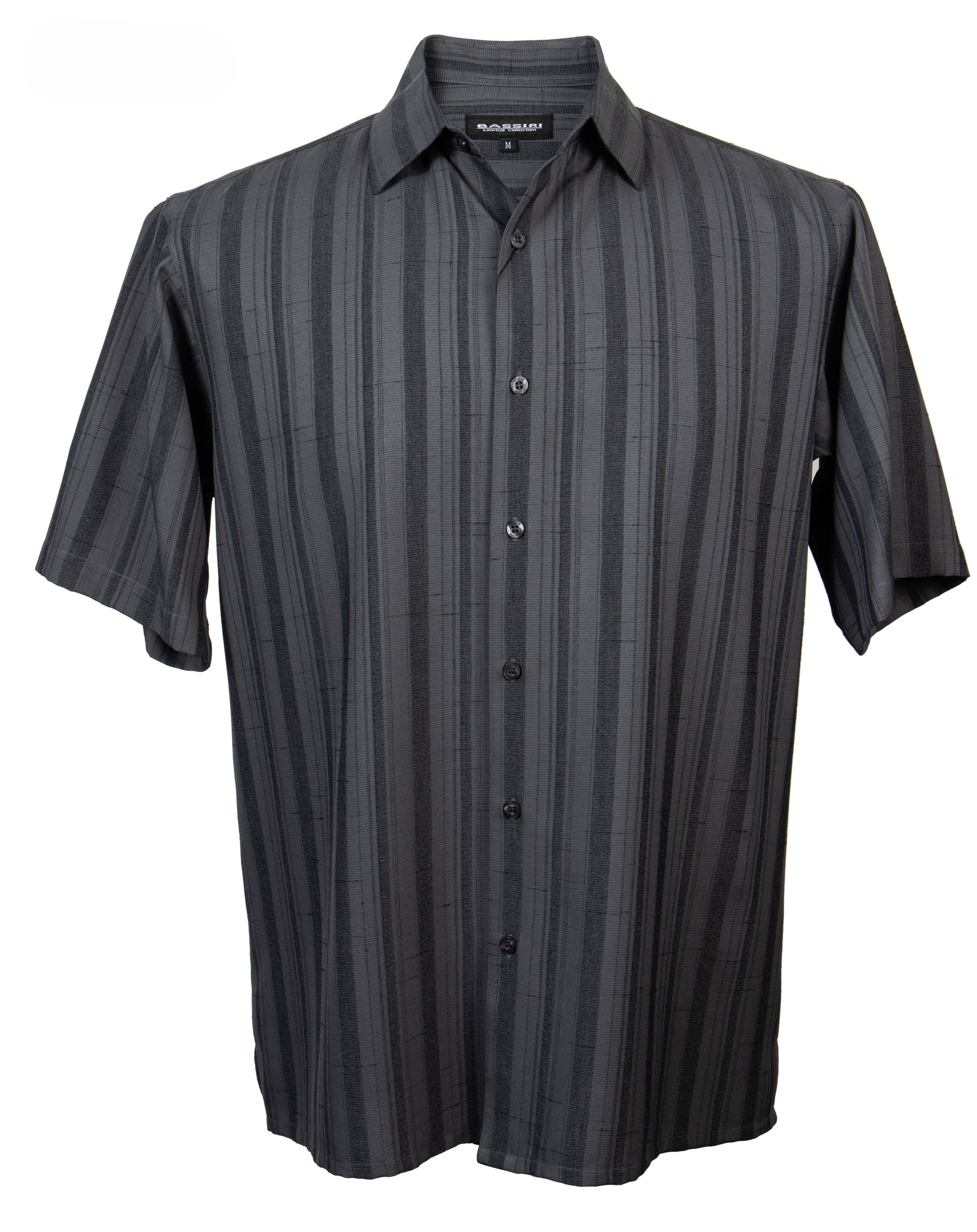 VerticalVirtue Collection Charcoal Striped Microfiber Short Sleeve Shirt – Full Cut