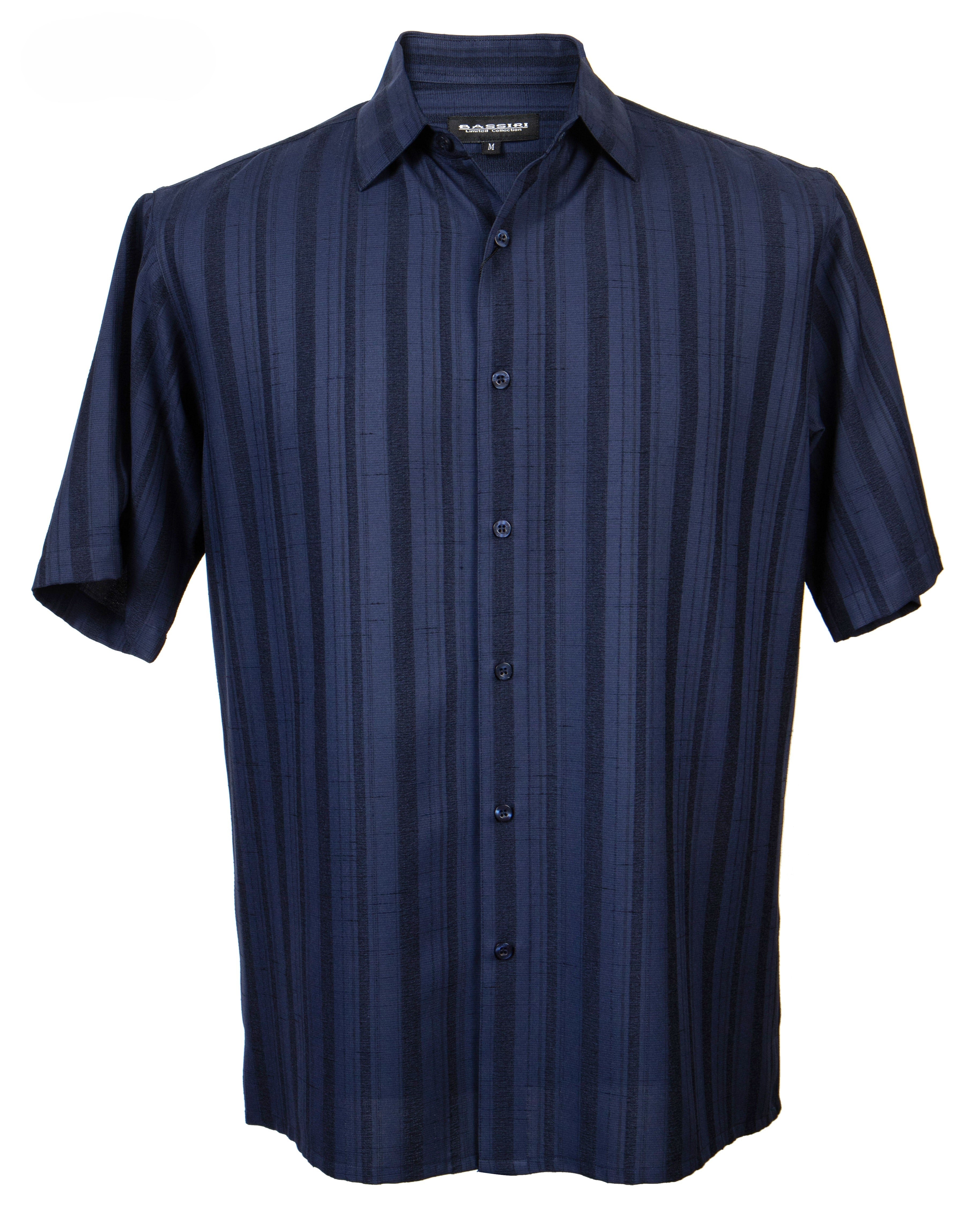 VerticalVirtue Collection Navy Striped Microfiber Short Sleeve Shirt – Full Cut
