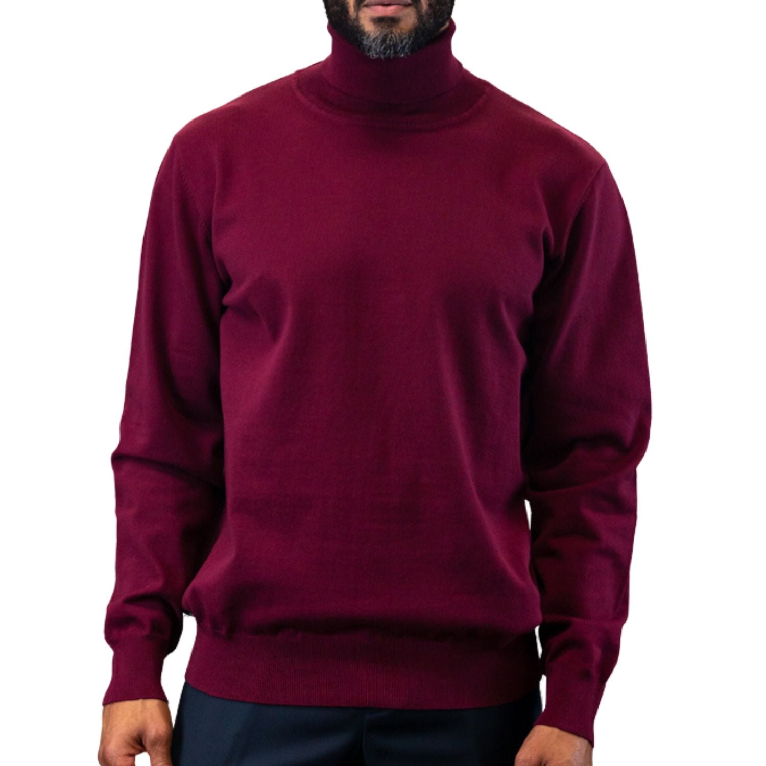 Vesta Collection: Modern Fit Burgundy Wool & Cashmere Turtleneck Sweater