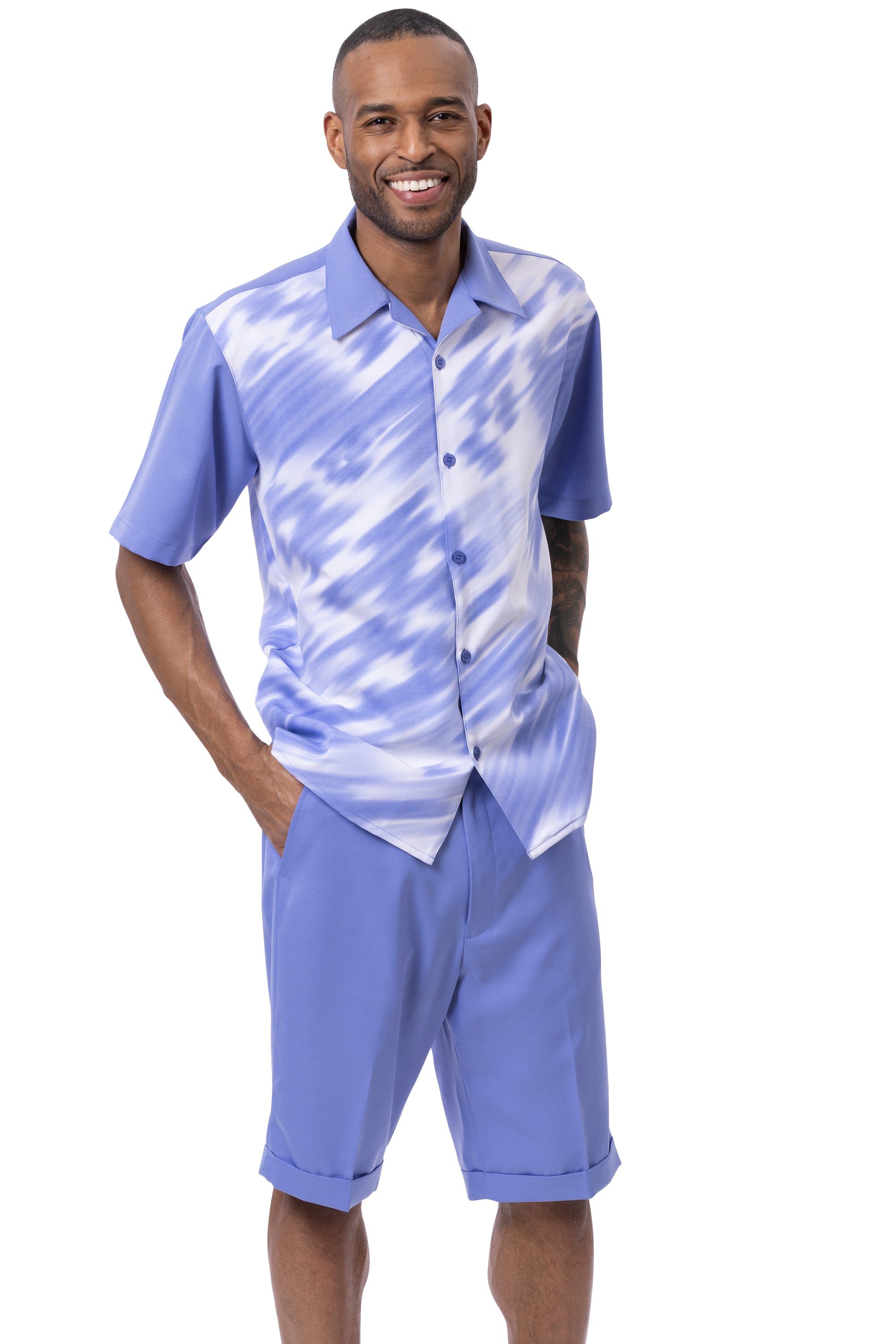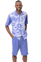 Vibique Collection: Montique's Men's Print Design Shorts Set Walking Suit In Blue
