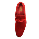Vignus Collection: Men's Velvet Plain Toe Smoker Shoes with Braided Strap in Red